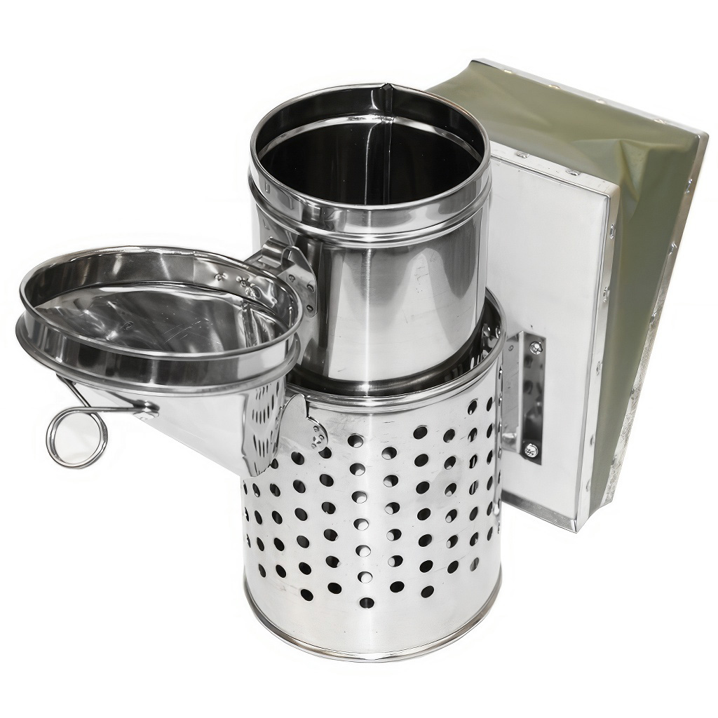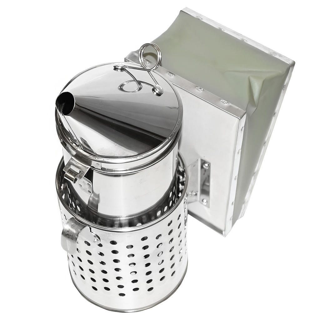 Stredne veľký nerezový dymák (dymák) JaHan patrí k základnej výbave každého včelára. Telo z kvalitnej nerezovej ocele vyniká dlhou životnosťou, ľahkým čistením a vysokou odolnosťou voči žiaru aj prepáleniu. Spoľahlivý ťah zaisťuje tradičný kožený mech, vďaka ktorému palivo rýchlo rozhoríte a udržíte stabilný dym bez zbytočnej námahy.