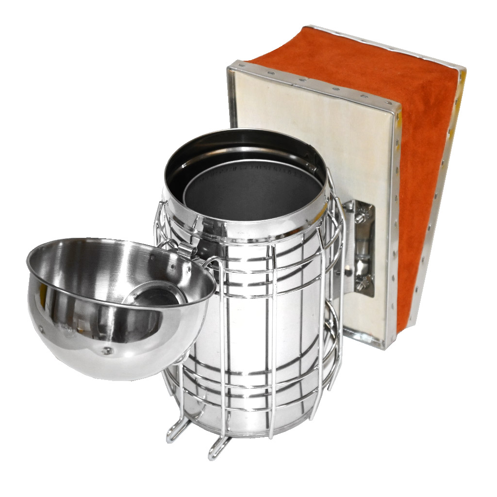 Konštrukcia z nerezovej ocele zaisťuje dlhú životnosť, odolnosť voči prepáleniu aj bežným poveternostným vplyvom na včelnici. Vnútri je vyberateľná vložka , ktorá uľahčuje vysypanie popola a rýchle čistenie po práci. Pre bezpečnejšiu manipuláciu je dymák vybavený ochrannou drôtenou mriežkou , ktorá znižuje riziko kontaktu s rozpáleným plášťom.