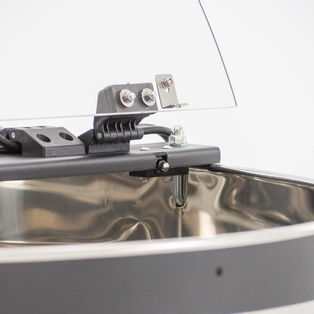 Bezpečná prevádzka pri každom vytáčaní: Medomet je vybavený bezpečnostnou poistkou, ktorá pri otvorení veka z 4mm plexiskla okamžite zastaví otáčanie koša. Zvyšuje to bezpečnosť obsluhy aj pri svižnom tempe práce alebo pri zapojení pomocníkov.