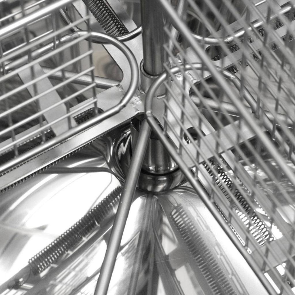 Nerez pre dlhú životnosť a čistú medáreň: Bubon aj kazety sú z kyselinovzdornej nerezovej ocele, ktorá je odolná, ľahko umývateľná a vyhovuje prísnym potravinárskym požiadavkám. Tvarované (zúžené) dno podporuje plynulý odtok medu smerom k ventilu a pomáha minimalizovať zvyšky v bubne.