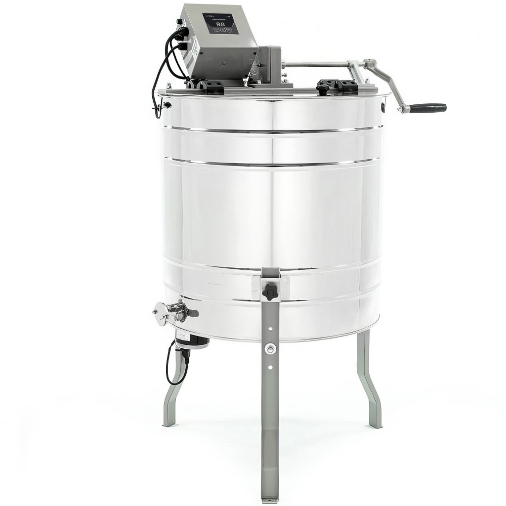Nerezový tangenciálny medomet na 4 rámiky z osvedčeného radu Optima Line je praktickou voľbou pre menšie aj stredné prevádzky. Bubon s priemerom 60 cm je vyrobený z kyselinovzdornej nerezovej ocele, konštrukcia je pevná a pritom kompaktná a povrch je chránený šedým práškovým lakom. Vďaka hornému veku z priehľadného 3mm plexiskla môžete bezpečne kontrolovať priebeh vytáčania bez nutnosti medomet otvárať.