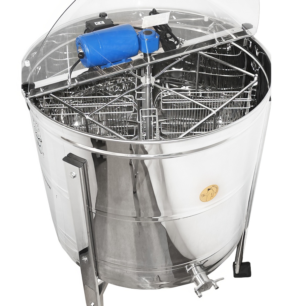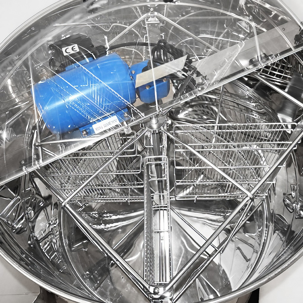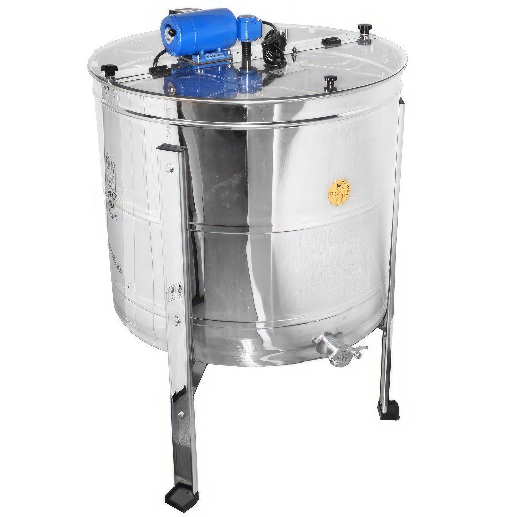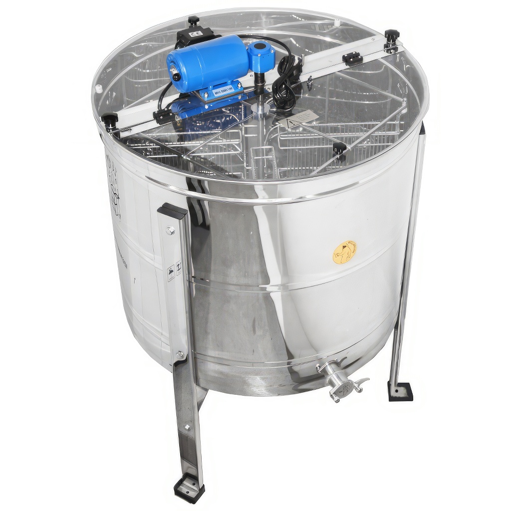 Zvratný medomet Mellarius 4 rámikový. Včelársky medomet s elektrickým pohonom. Elektromotor je umiestnený na upínacej lište v hornej časti medometu, vďaka tomu je možné medomet jednoducho rozobrať pri čistení. Je vybavený jednoduchým a spoľahlivým regulátorom otáčok priamo na statore motora. Rozmery koša hĺbka 46 cm x šírka 29 cm. Výhodou tohto štyroch rámikkového medometu je malý priemer bubna (76 cm), vďaka čomu je zaistená dobrá priestupnosť dverami. Výška medometu aj s kovovým podstavcom je cca 112 cm. Všetky časti medometu ktoré prídu do styku s medom sú vyrobené kompletne z nerezu. Prevod otáčavej sily z motora je bezproblémový vďaka kvalitným ložiskám. Nový medomet je určite skvelá pomôcka pre každého včelára. Medomety majú plnú 2 ročnú záruku. Ponúkame pre našich zákazníkov kompletný záručný aj pozáručný servis. Sprostredkovávame možnosť výmeny a dodávky náhradných dielov. Medomety majú európsky certifikát kvality a bezpečnosti certifikát CE. Záruka 24 mesiacov.