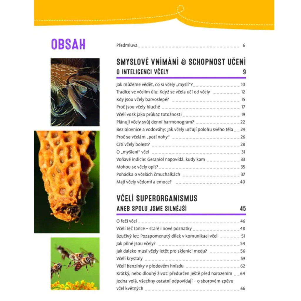 Kniha odpovedá aj na zdanlivo jednoduché, ale prekvapivé otázky: potia sa včelám naozaj nohy? Ako môžu včely „počúvať kolenom“? A kto sú tajomné „spievajúce topičky“, ktoré udržujú teplo v úli?
