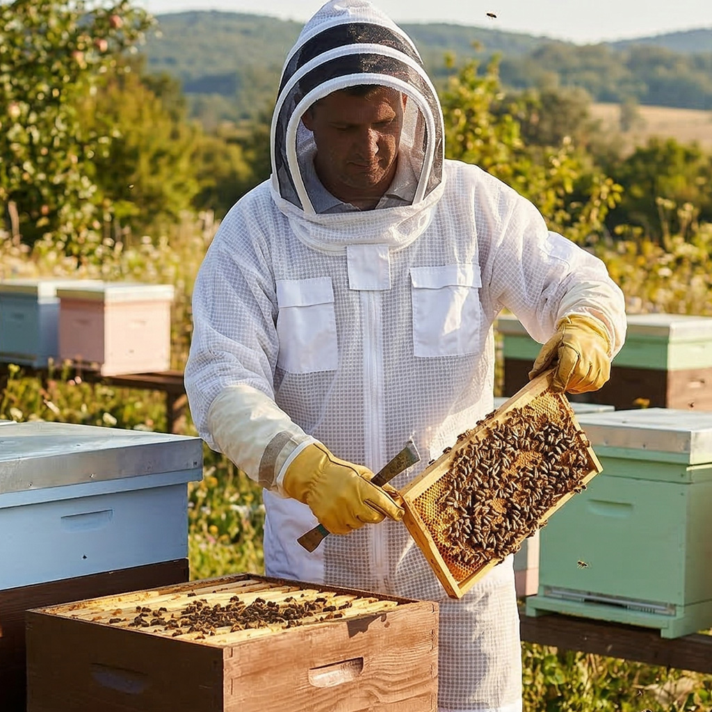 Táto celotelová včelárska kombinéza v štýle „kozmonaut“ s integrovanou kuklou je navrhnutá pre pokojnú a bezpečnú prácu pri úľoch. Ocenia ju začínajúci včelári aj tí skúsení - spoľahlivo chráni celé telo pred žihadlami pri bežných úkonoch na včelnici. Pevná, tuhšia bavlnená tkanina odoláva prepichnutiu a svetlá farba včely zbytočne nedráždi, takže prispieva k pokojnejšiemu priebehu prehliadok včelstiev. S touto kombinézou sa môžete sústrediť na prácu aj pri bodavejších včelách.