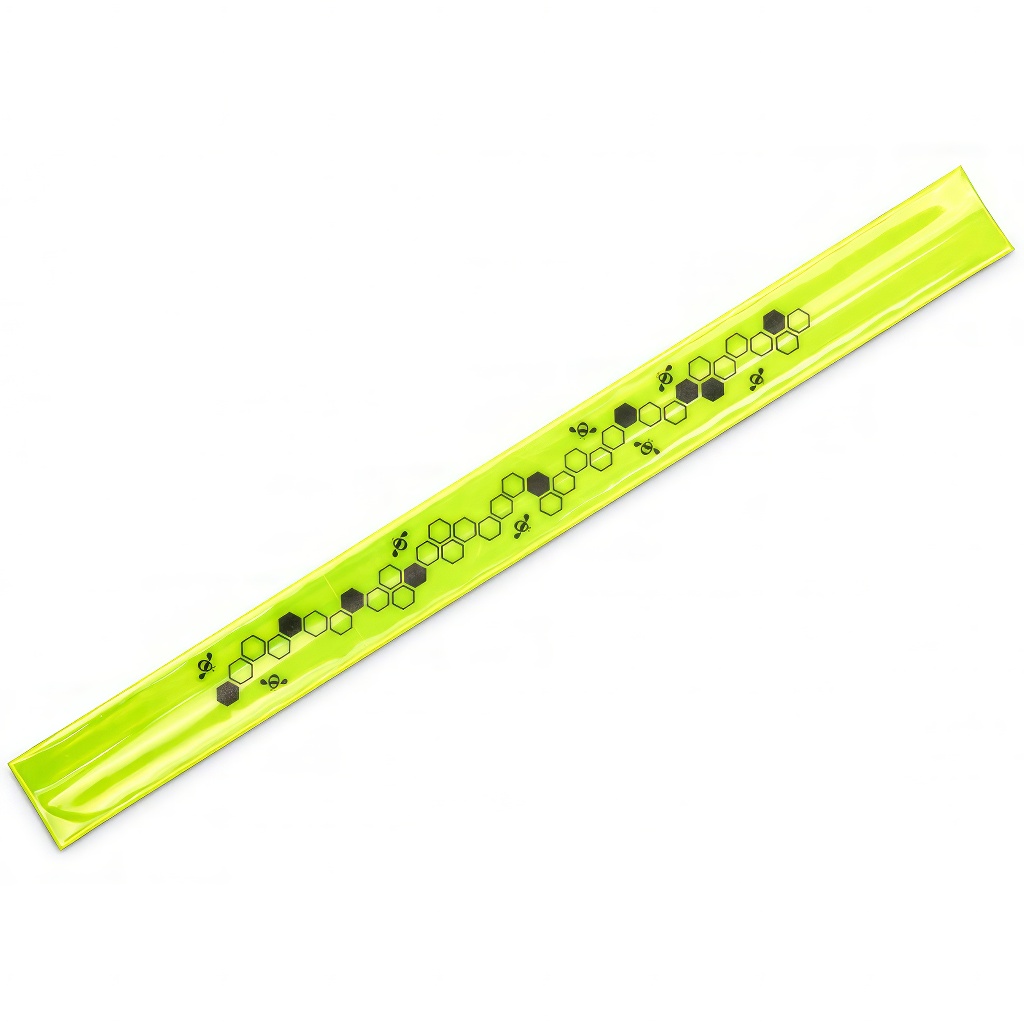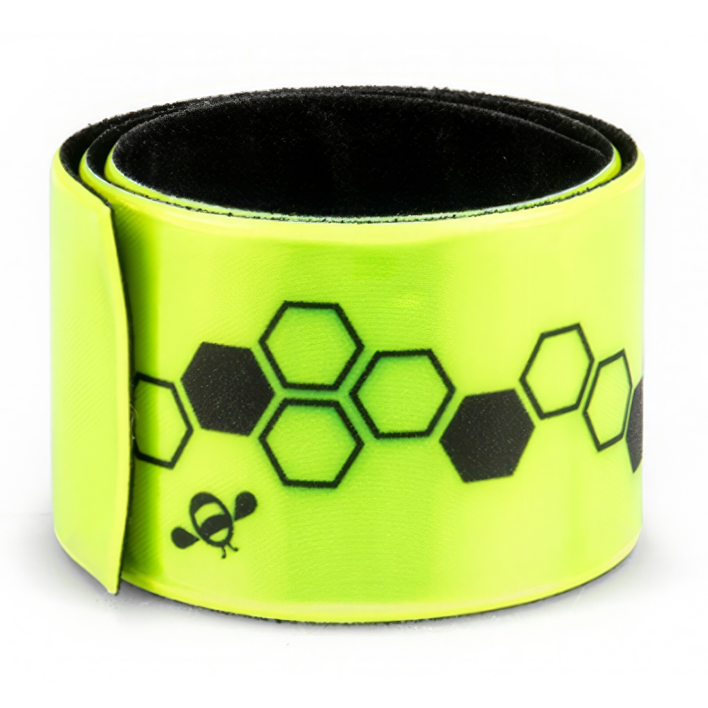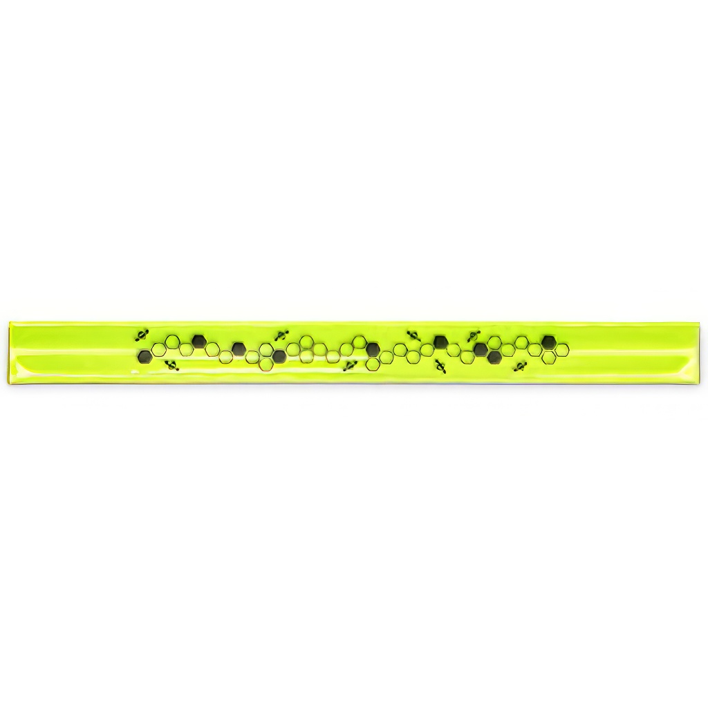 Reflexná, neónovo žltá páska s potlačou "včelí plástov" pre lepšiu viditeľnosť na ceste. Vyrobené z plastu na nosenie na rukách alebo nohách.