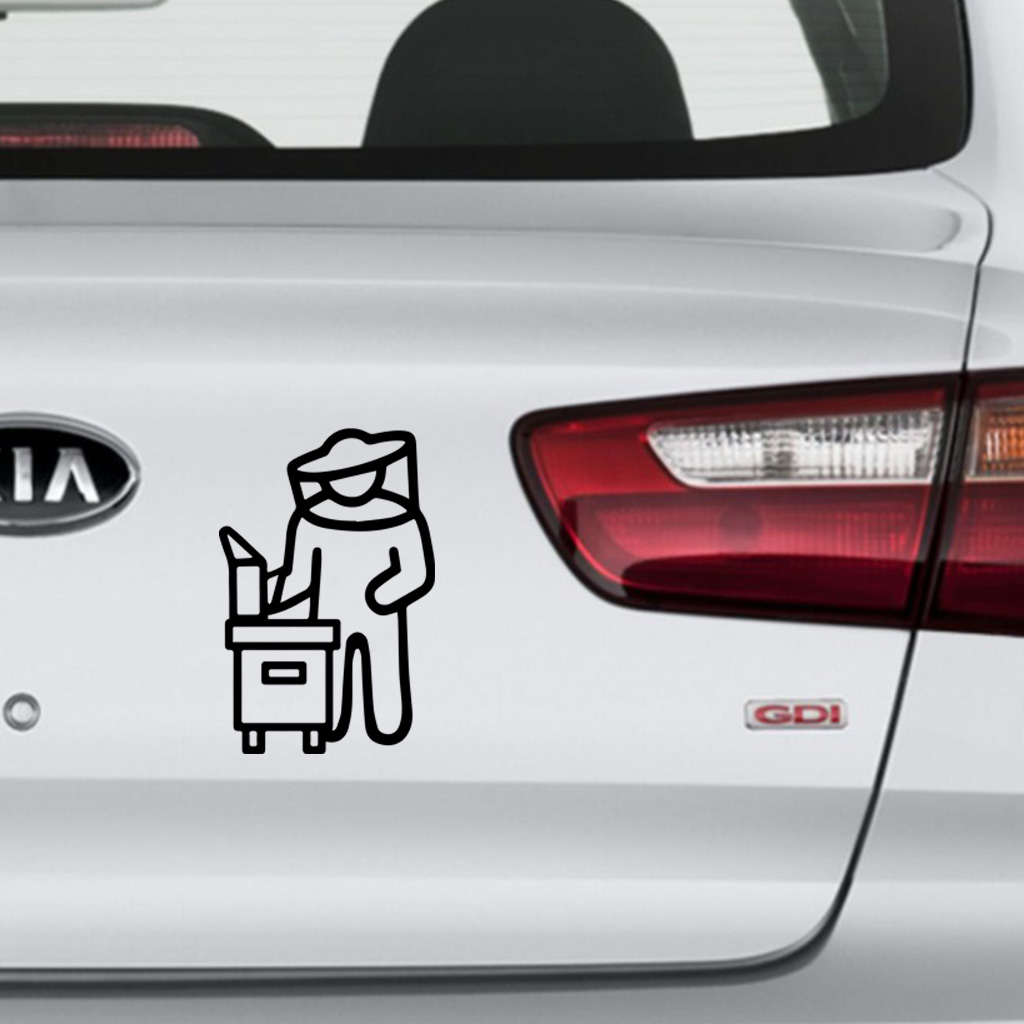 Samolepiaci obrázok včelár s úlom v čiernom prevedení, teda vhodné na svetlejšie podklady. Táto samolepka je z vodeodolného materiálu s kvalitným lepidlom a hodí sa tak aj do namáhaných prostredí, napríklad na vaše auto.