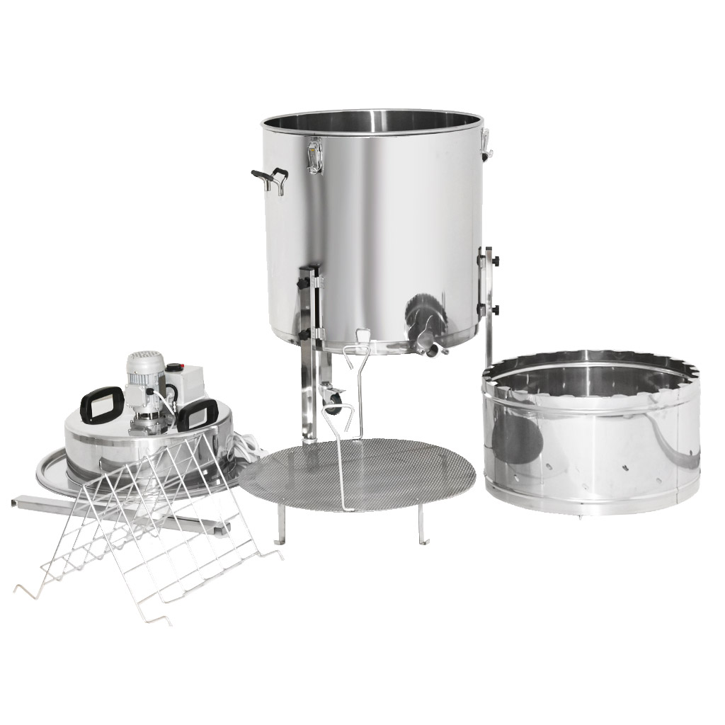 Zariadenie dodávame pripravené na okamžité použitie. Pre ľahký presun v medárni je osadené nohami s brzditeľnými kolieskami .