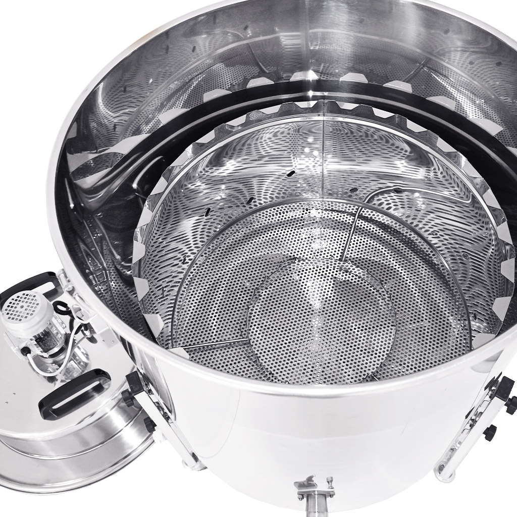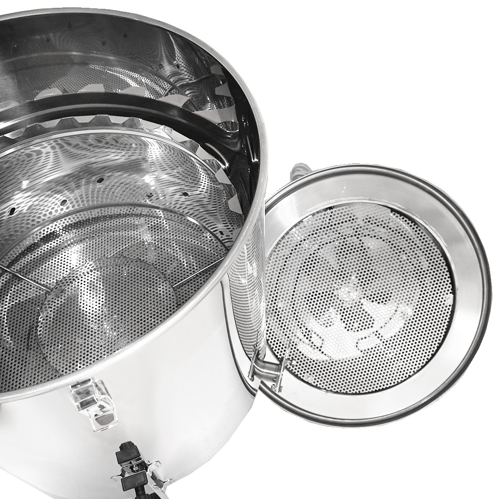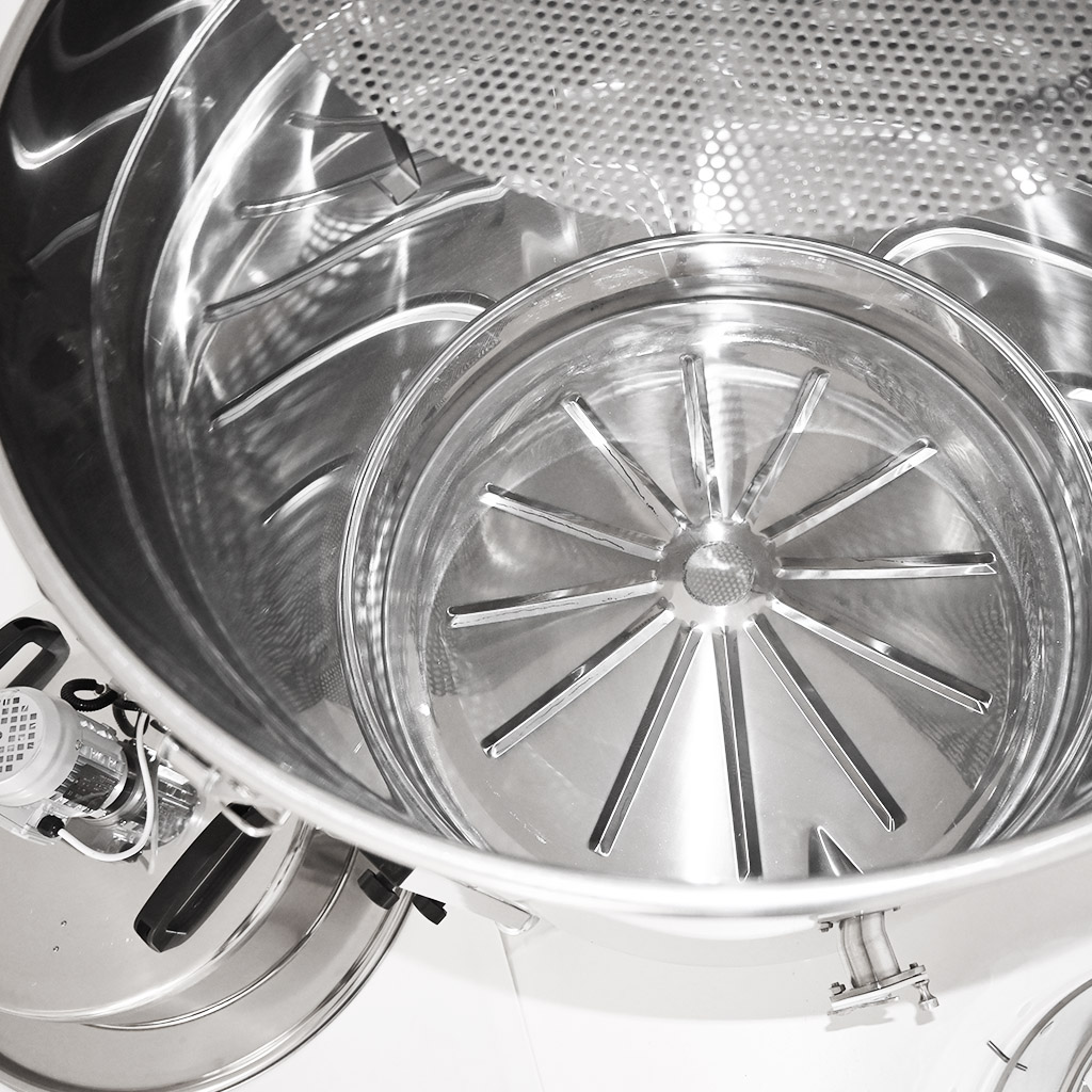 Pre maximálnu výťažnosť je nádoba riešená so šikmým dnom a výpustí so škrtiacim ventilom v najnižšom bode, takže zostáva minimum zvyškov a vytečie aj posledný med.