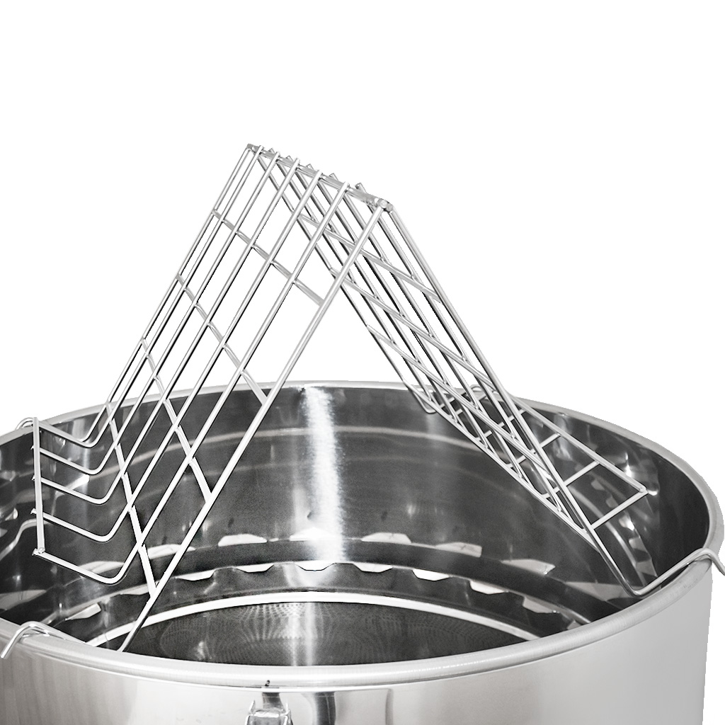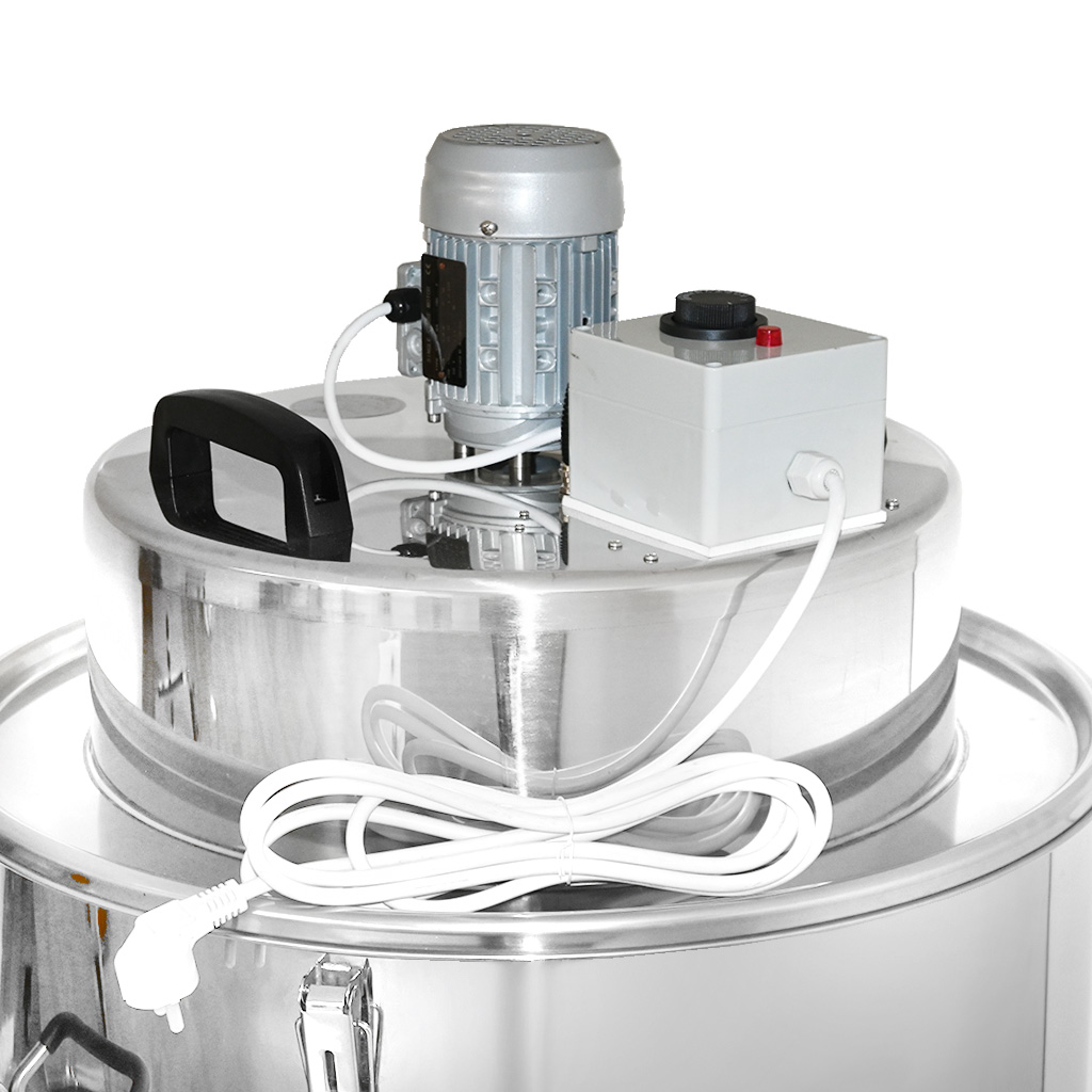 V medárni sa počíta odolnosť aj hygiena. Nádoba je vyrobená z kyselinovzdornej nerezovej ocele 1.4301 (AISI 304) , bežne používanej v potravinárstve. Hrúbka plechu 1 mm zaisťuje pevnosť pri plnom zaťažení aj pri častej manipulácii. Leštené povrchy navyše uľahčujú údržbu – med ani vosk sa na stenách zbytočne nedržia a čistenie po práci je rýchle.