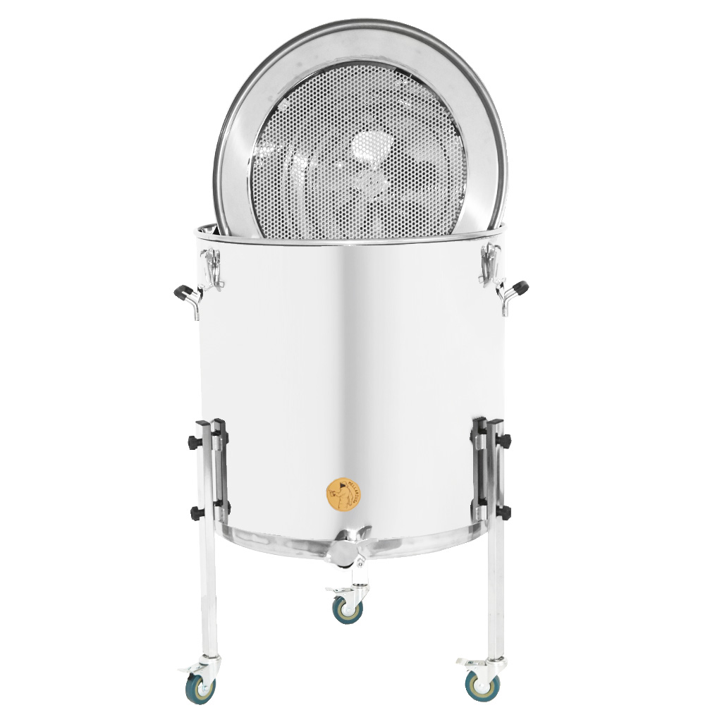 Mellarius nie je len separátor viečok. Vďaka chytrej konštrukcii zastane tri úlohy v jednom : funguje ako tavička vosku, separátor medu od viečok a zároveň ako veľkokapacitná komora na štecovanie. S vnútorným priemerom 64 cm a vnútornou výškou 71 cm do nádoby ľahko vložíte aj väčšie nádoby (vedierka) alebo poháre so skryštalizovaným medom.