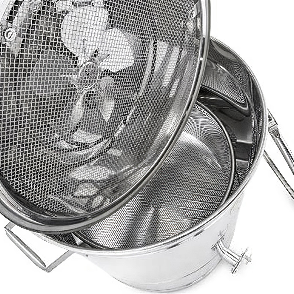Separátor využijete hlavne pokiaľ používate odviečkovací stroj alebo nôž a tým môžete spracovať viac odstráneného vosku zmiešaného s medom. Kapacita nad odkvapkávacím plechom je asi 55 litrov.