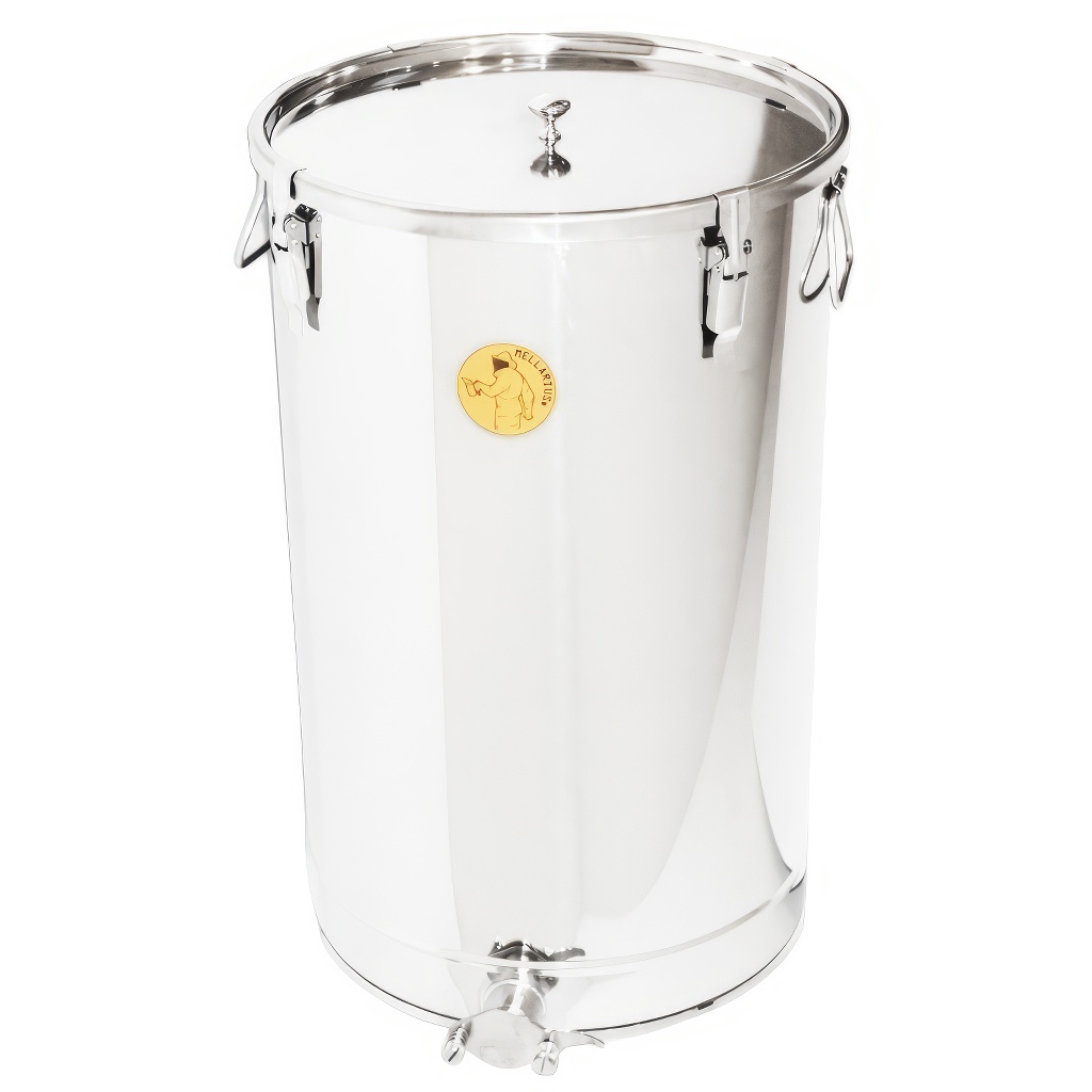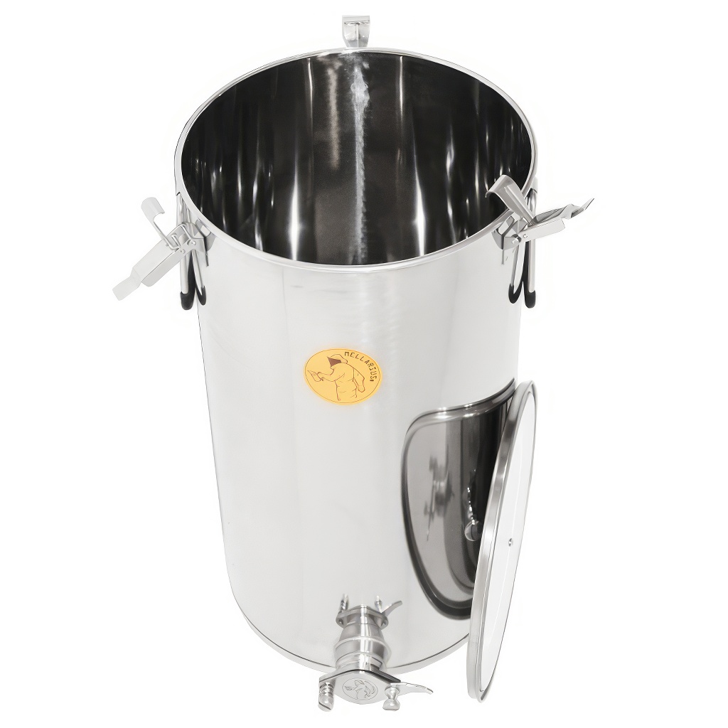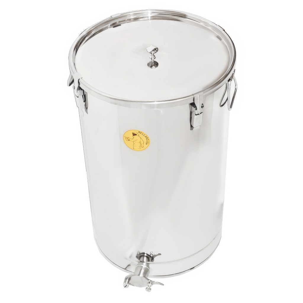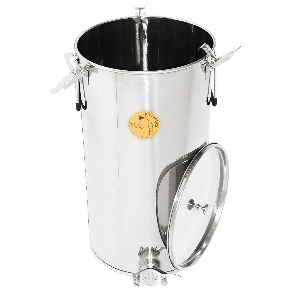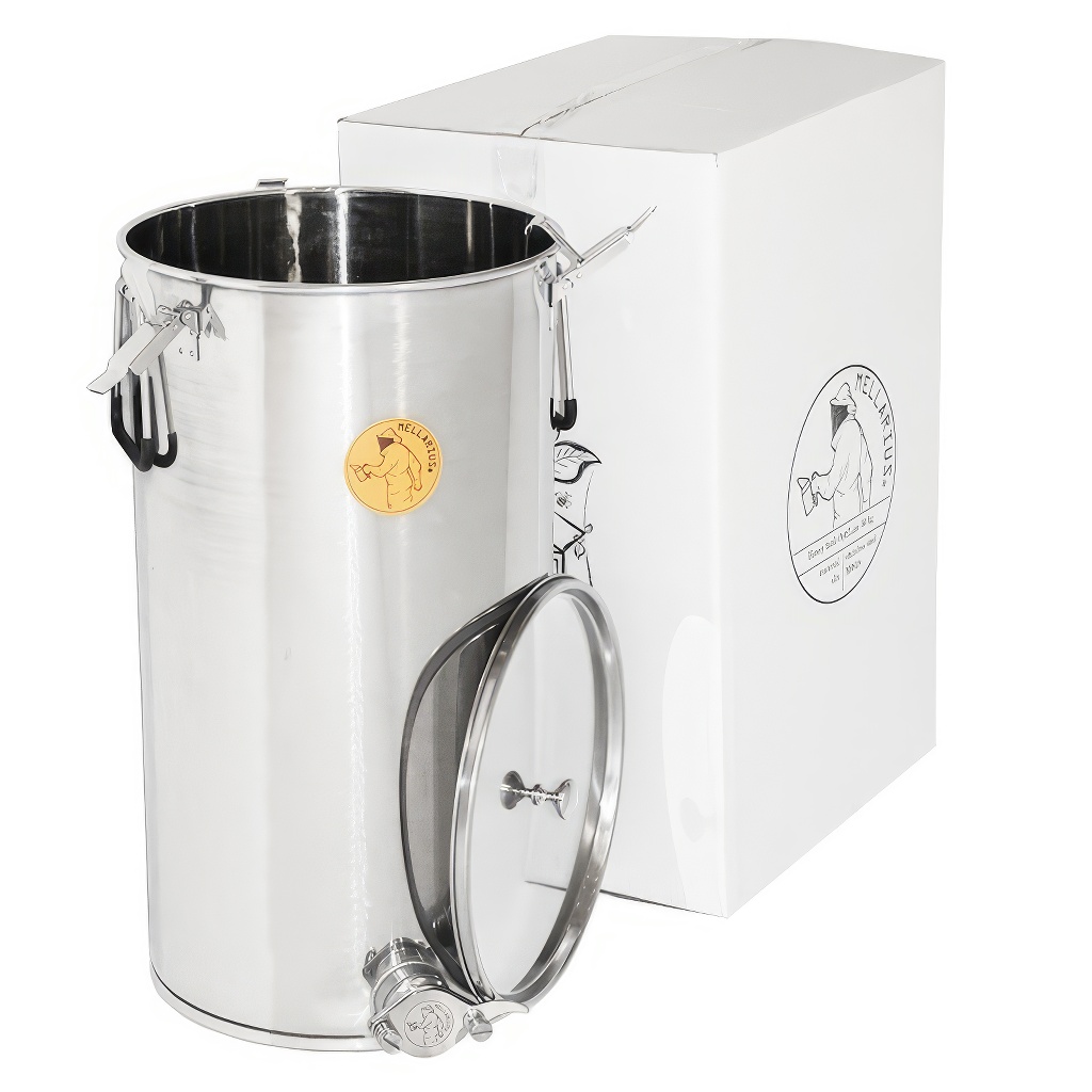 Nádoby na med Mellarius v niekoľkých variantoch, v tomto prípade s navareným nerezovým kohútikom pre maximálnu pevnosť. Sú vyrábané z kvalitnej nerezovej ocele, určené na potravinárske účely s dostatočnej hrúbkou (0,8 až 1 mm), tak aby nemohlo jednoducho dochádzať k nechceným zárezom. Všetky časti nádob sú kvalitne zvarené pomocou plazmového zvárania. Pri konštrukcii je kladený dôraz na hladké povrchy, ktoré je možné ľahko čistiť, preto sú nádoby vyrobené z leštených nerezových plechov. Všetky naše nádoby sú opatrené nerezovými madlami pre ľahké prenášanie.