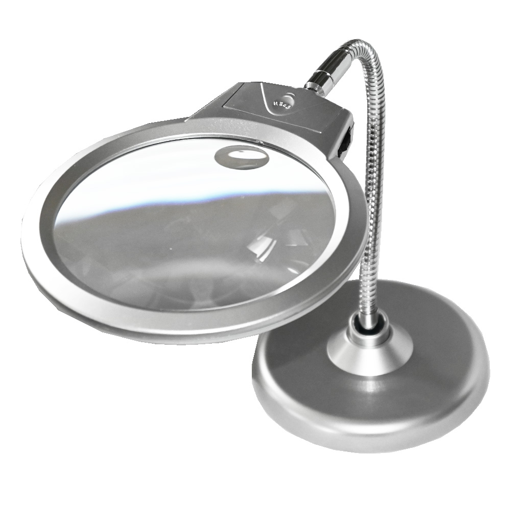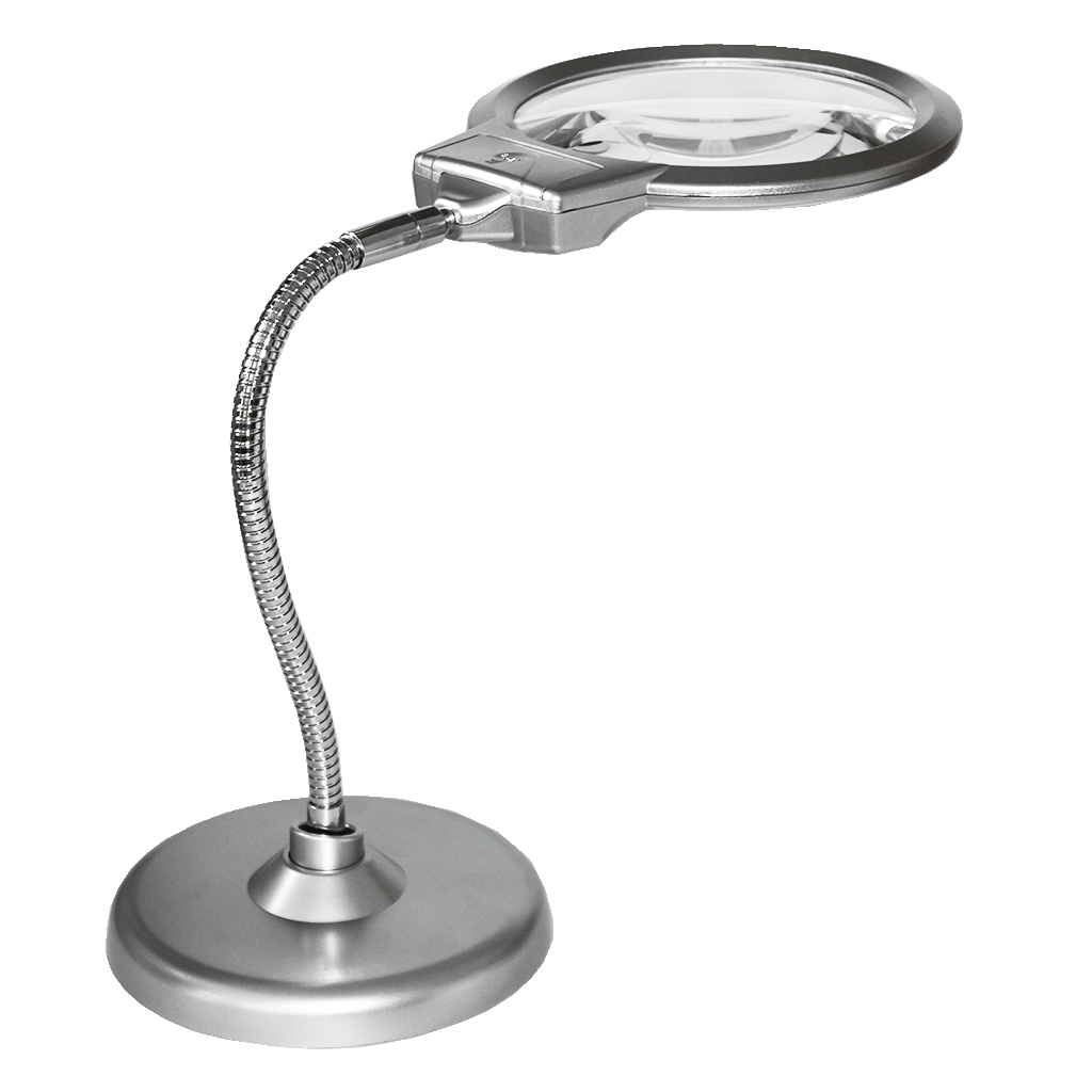 Stolová lupa s LED osvetlením s dvoma zväčšovacími sklami. Možné zväčšenia sú 2,25 a 5 podľa použitej šošovky. Lupa má veľký a pevný stojan s ohybným nástavcom, ktorým môžete smer a sklon lupy nastaviť podľa potreby. Súčasťou lupy sú dve LED osvetlenia.