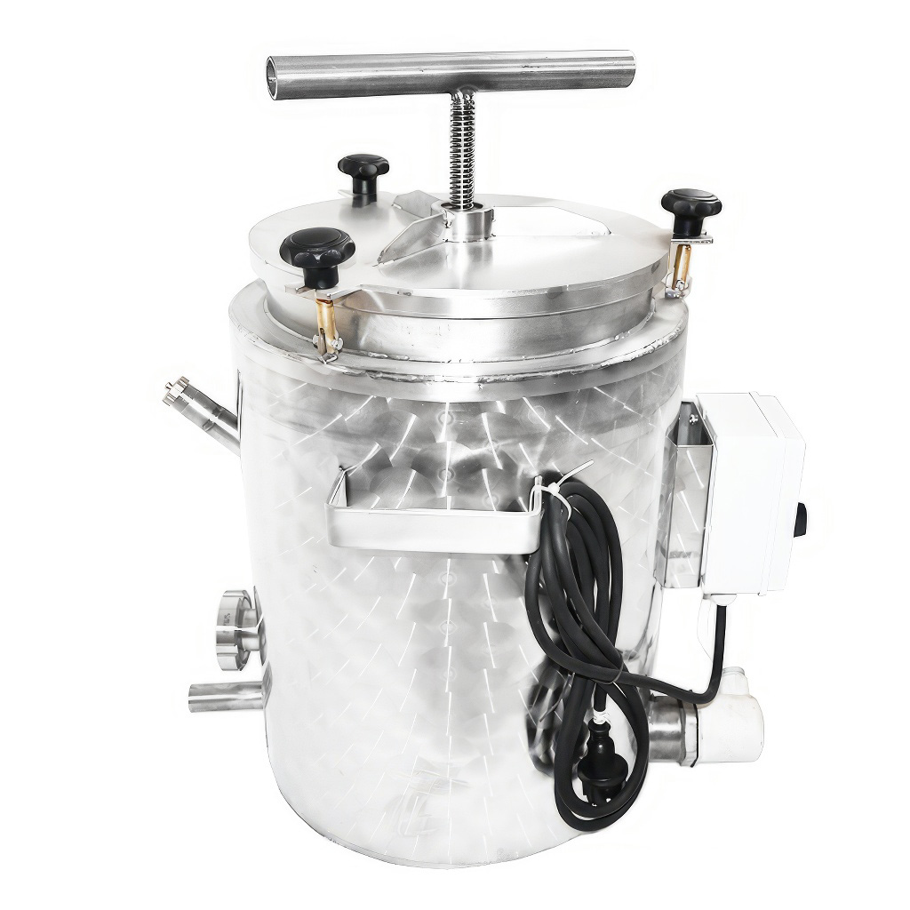 Najväčšou výhodou je kombinácia dvoch krokov v jednom zariadení. Horúca para postupne uvoľňuje vosk zo súší umiestnených vo vnútornom koši a na konci procesu prichádza na rad mechanický lis, ktorý z koša „doženie“ aj posledné zvyšky. Výsledkom je vyššia výťažnosť a menej odpadu, čo oceníte pri každom väčšom voskovom hospodárstve.