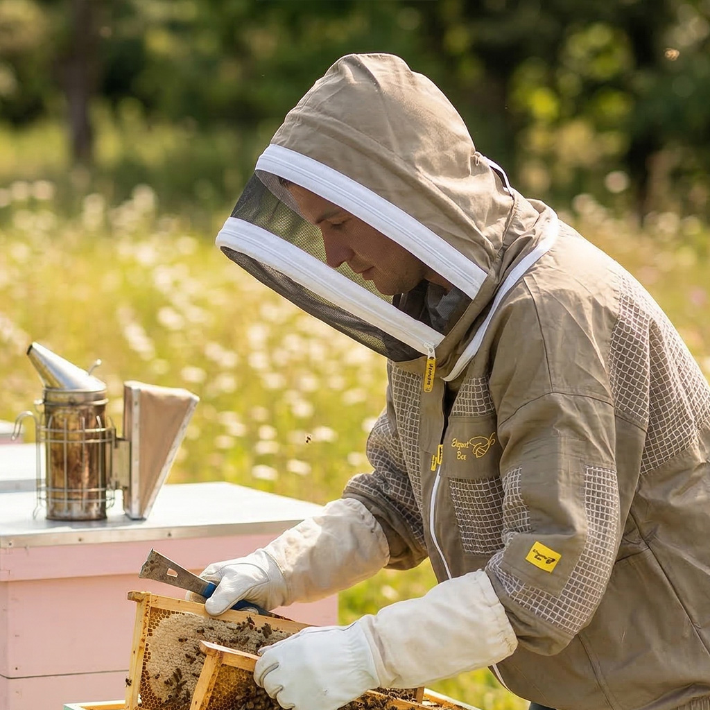 Kukla je vystužená vložkami z odolného plastu, ktorý zabezpečuje odstup tkaniny pokožky, pre maximálnu bezpečnosť proti včeliemu bodnutiu v oblasti hlavy.
