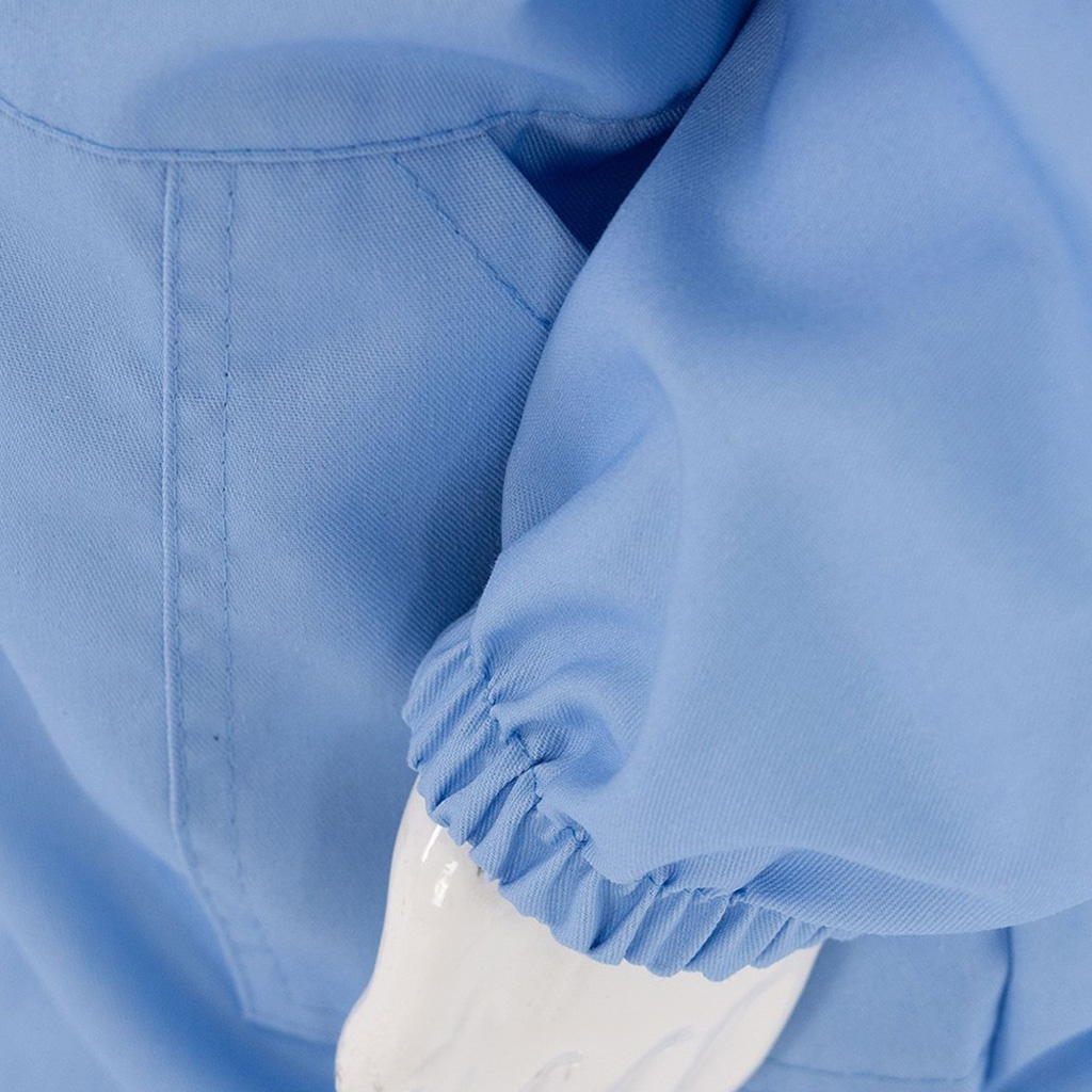 Pri včelárskom odeve je kľúčová spoľahlivá ochrana. Klobúk tejto bundy účinne chráni hlavu aj krk pred žihadlami. Vďaka dvojitým kruhom drží sieťku v bezpečnej vzdialenosti od tváre, zatiaľ čo zadnú časť klobúka tvorí kombinácia pevnej tkaniny a vetracej sieťoviny pre lepšiu cirkuláciu vzduchu. V oblasti krku je bunda doplnená praktickou chlopňou na suchý zips, ktorá pomáha zabrániť preniknutiu včiel pod odev. Gumičky na rukávoch spolu s otvorom na palec obmedzujú vyhrňovanie rukávov, takže predlaktia zostáva chránené aj pri manipulácii s nadstavkami a rámikmi.