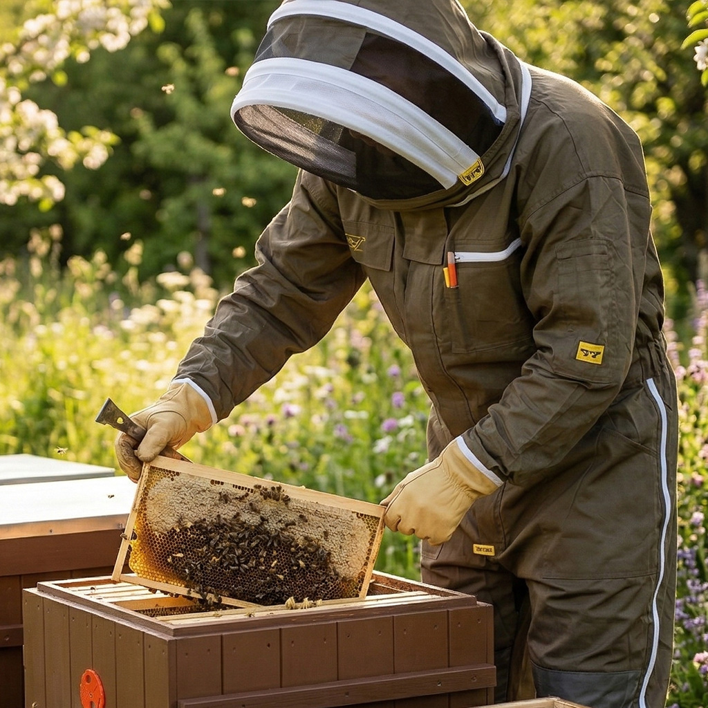 Včelárska kombinéza s kuklou na každodenné použitie na včelnici. Tieto kombinézy majú mnohé vylepšenia a patria k tomu najlepšiemu, čo vám môžeme ponúknuť. Praktický odtieň tmavej kaki, vo veľkostiach S až XXXXL. Vyrobená z odolných materiálov, ktoré bránia včeliemu bodnutiu.