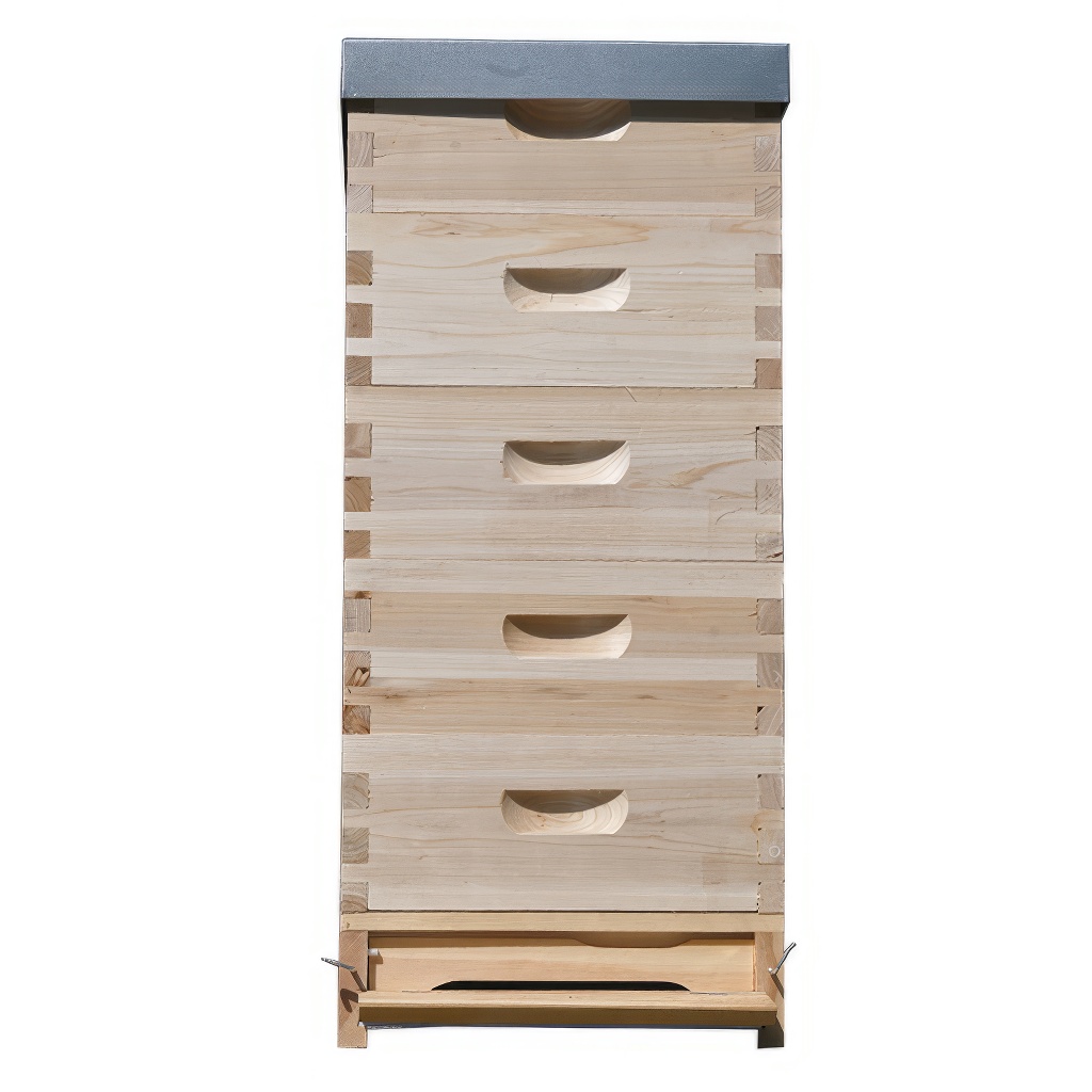 Kompletný úľ Langstroth sa skladá z varroadno Langstroth (podmet 10 cm), 5 x nástavok Langstroth 2/3 a veka. Jedná sa o celodrevenú neuteplenú konštrukciu úľa. Nástavky sú dodávané rozložené (jednoduché zloženie) a nemajú cesnové očko (možno ho ľubovoľne vyvŕtať podľa vašich potrieb).