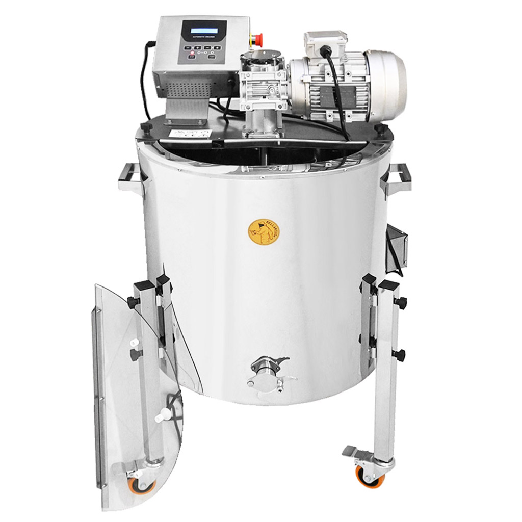 Súčasťou zariadenia je aj dvojitý plášť s ohrevom. Ten využijete napríklad pri riadenom povolení medu alebo pri potrebe kryštáliky bezpečne rozpustiť – po zahriatí (aj nad 40 °C podľa zvoleného režimu) sa med opäť vracia do tekutej formy.