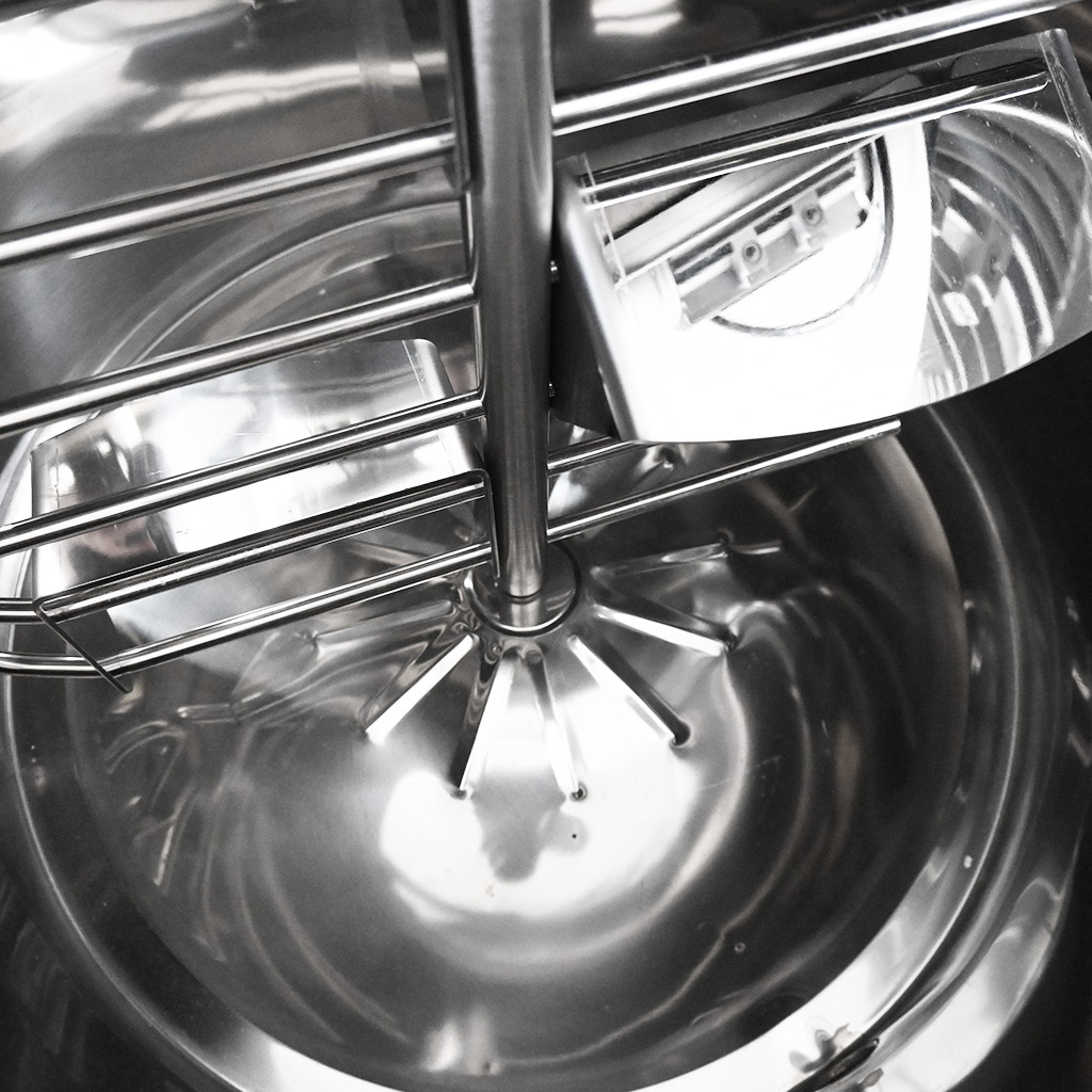 Konštrukcia počíta aj s rýchlym rozobraním na umývanie: miešaciu lištu aj výkonný elektromotor (750 W) možno ľahko demontovať uvoľnením dvoch skrutiek. Bezpečnú prevádzku podporuje poistka vo veku a masívne nerezové madlá pre pohodlnú manipuláciu.