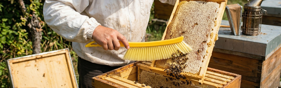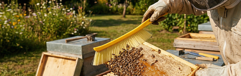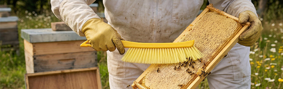 Pri kontrole včelstva aj pri medobraní je dôležité pracovať pokojne a zbytočne nepredlžovať dobu, počas ktorej je úľ otvorený. Tento veľký metlička ponúka široký záber štetín (33 cm), takže plásť často ometiete jedným až dvoma plynulými ťahmi. Mäkké syntetické štetiny včely jemne „odsunú“ z povrchu plástu, čím sa znižuje riziko poranenia aj zbytočného rozrušenia včelstva.